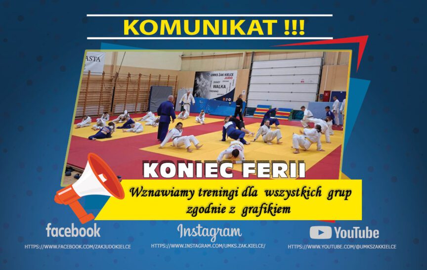Komunikat In komunikaty by Artur Karyś2 lutego 2026 Ferie Ferie i po Feriach !!! Wznawiamy treningi we wszystkich grupach zgodnie z grafikiem